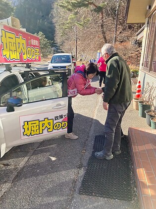 今日(2/3)も富士河口湖町と鳴沢村の各地で、たくさんの方にお会いしました。