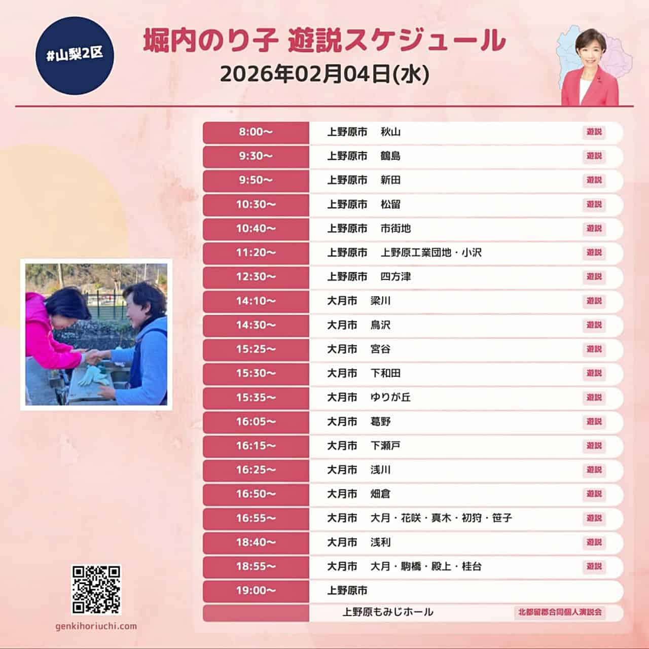 明日(2/4)は、上野原市・大月市を遊説で回ります。