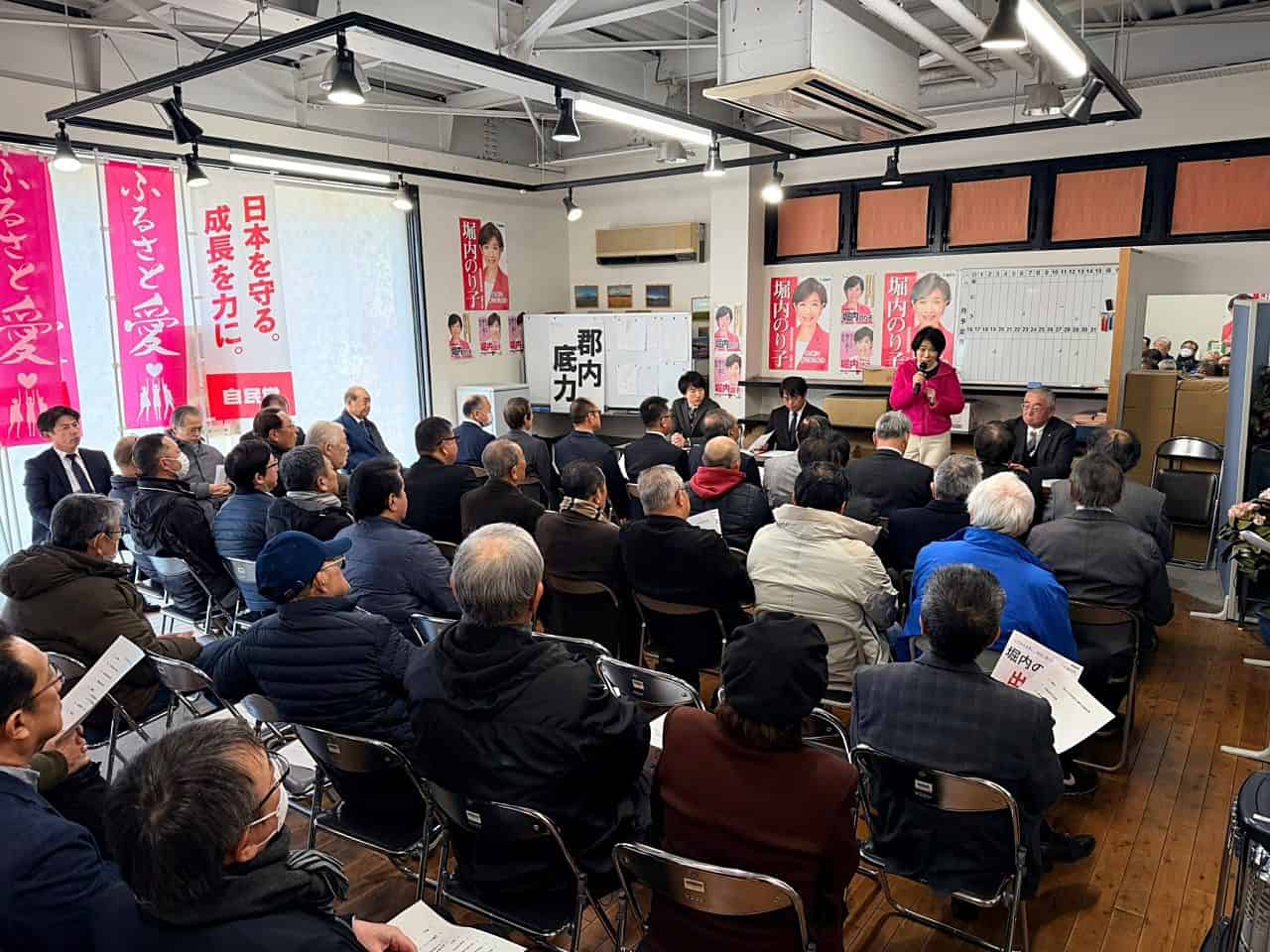 活動報告 活動報告選挙 厳しい寒さの中、温かいお言葉に励まされています 01/26/2026 10 厳しい寒さの中、温かいお言葉に励まされています 堀内のり子は連日元気にフル回転、ひたすらご挨拶を続けています。 厳しい寒さが続いていますが、皆さまの温かいお言葉に心から励ましていただいてます。 最強寒波の中、どうか体調管理には十分お気をつけてください。 1 の 4 キーワードによる関連記事他の記事 活動報告 地元の皆さまにお集まりいただき事務所開きを行いました 活動報告 衆議院解散と公選証書交付を受けて 活動報告 【上野原市林野火災鎮圧のお知らせ】関係機関の尽力に敬意と感謝 活動報告 【行政書士制度75周年・令和8年新年賀詞交歓会】総務副大臣として出席 ブログ 多くの方の期待に応えなければと、背筋が伸びる思いです 活動報告 【2026年ケーブルテレビ新年賀詞交換会】地域メディアの役割とICT活用の意義を共有 堀内のり子衆議院議員 山梨2区 前東京オリンピック競技大会・東京パラリンピック競技大会担当大臣 前ワクチン接種推進担当大臣 元環境副大臣 兼 内閣府副大臣 自由民主党山梨県第二選挙区支部長 元厚生労働大臣政務官 衆議院予算委員会理事 自由民主党総務 自由民主党団体総局・厚生関係団体委員長プロフィール今週よく読まれている記事 自民党山梨県連総務会にて次期衆議院選挙 山梨2区公認候補の推薦決定 活動報告 01/22/2026 【一般社団法人 電気通信事業者協会(TCA) 令和8年賀詞交歓会】総務副大臣として出席・挨拶 活動報告 01/19/2026 上野原市・大月市での山林火災 活動報告 01/19/2026 上野原市で発生した火災現場の視察 活動報告 01/13/2026 地元の皆さまにお集まりいただき事務所開きを行いました 活動報告 01/25/2026