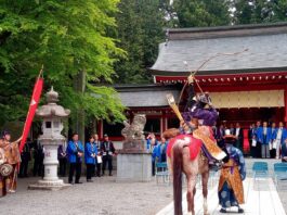【富士河口湖町 流鏑馬祭】勝山の伝統ある春を告げる祭、迫力の馬上射箭